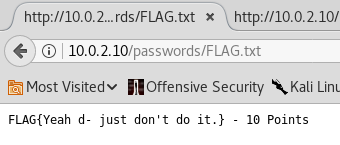 - FLAG{Yeah d- just don't do it.} - 10 points