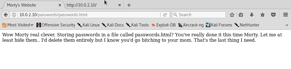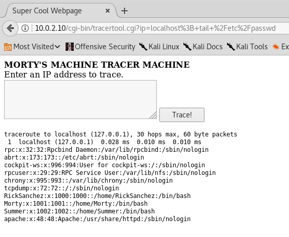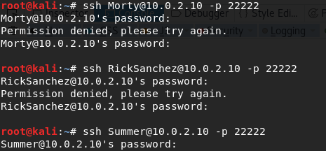 Voila! Three users: Morty, RickSanchez and Summer. I bet the password we have belongs to one of these.