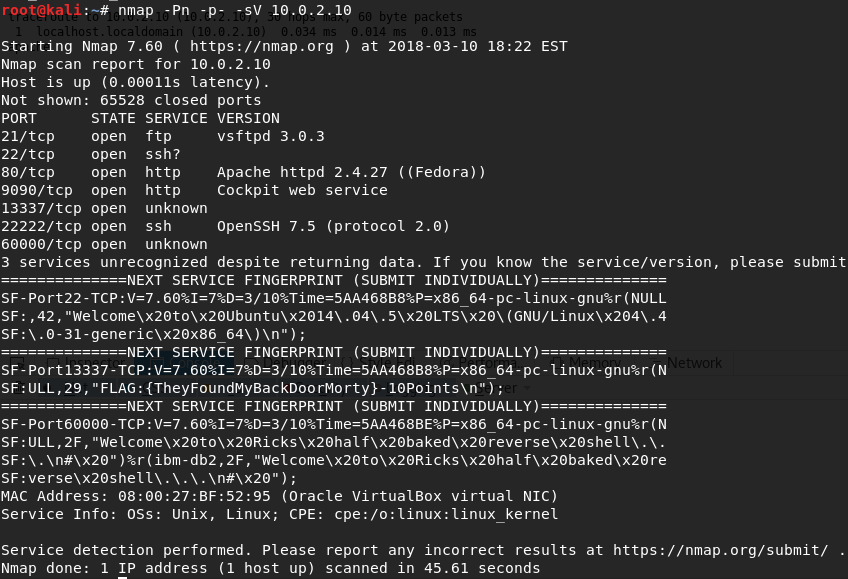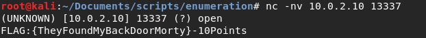 - FLAG:{TheyFoundMyBackDoorMorty} - 10 points