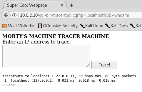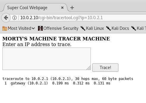 Let's go back to our cgi-bin directory. I've already opened this one, but now let's go to traceroute.cgi: