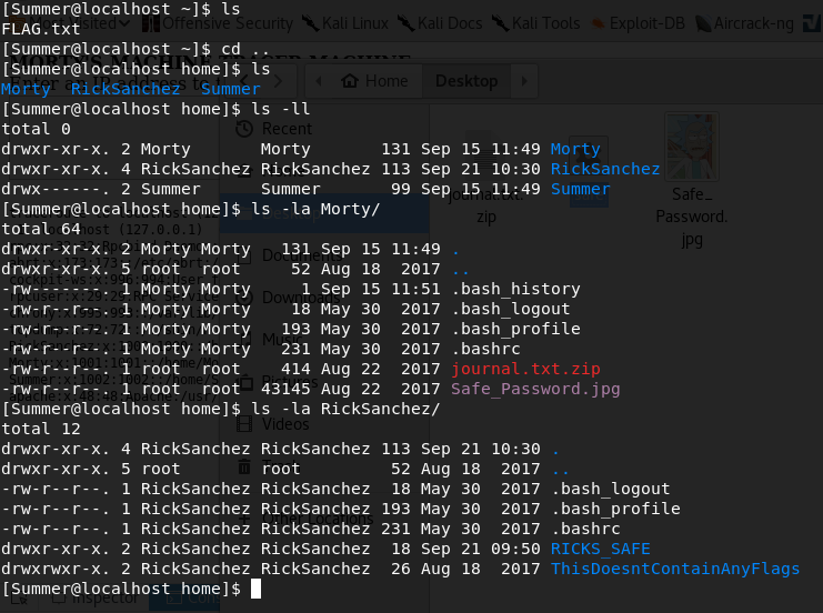 After poking around a bit, I noticed that Summer has access to the directories of the two other users: Morty and RickSanchez.