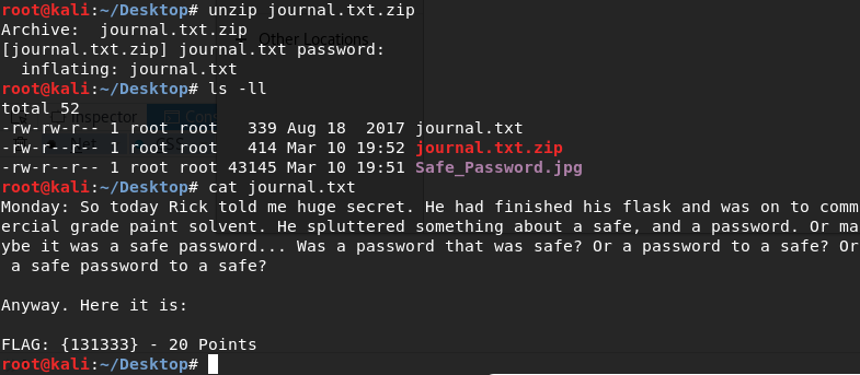 I quickly list the files, will actually look the same, but I find in the /root directory another sweet flag: