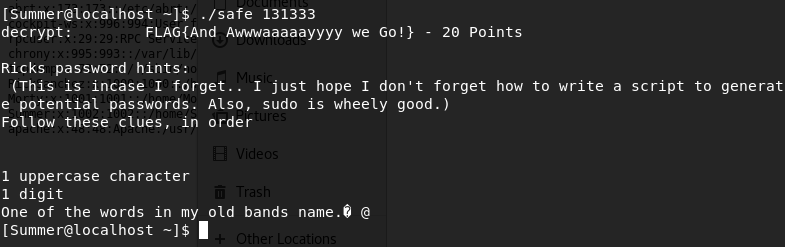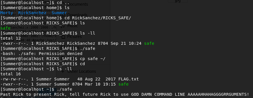 I know what safe Morty is talking about: the one that's on RickSanchez's home directory. Let's get it: